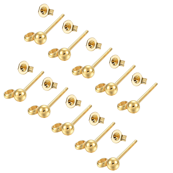 PandaHall DICOSMETIC 100Pcs Ball Stud Earrings Stainless Steel Stud Earrings with Ear Nuts Golden Stud Earring Post with Horizontal Loops... Price: $9.22 | PandaHall