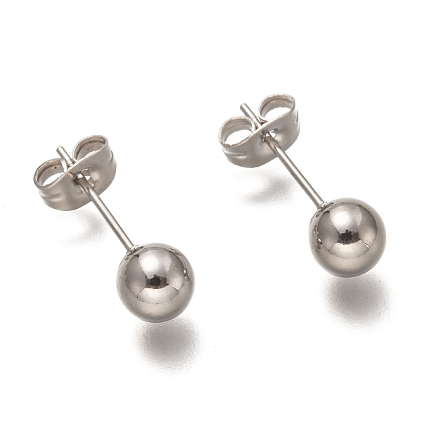 PandaHall 304 Stainless Steel Ball Stud Earrings, with 316 Stainless Steel Pin & Earring Backs, Round, Stainless Steel Color, 14.5x3mm, Pin... Price: $23.5 | PandaHall
