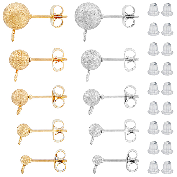 PandaHall Unicraftale 120Pcs 2 Color Iron Ball Stud Earring Findings, with Horizontal Loops & 120Pcs 304 Stainless Steel Ear Nuts & 120Pcs... Price: $8.62 | PandaHall