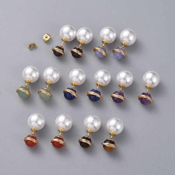 PandaHall Natural Gemstone Ball Stud Earrings, with Acrylic Pearl Ear Nuts, Golden Plated 304 Stainless Steel Stud Earring Findings and Ear... Price: $31.05 | PandaHall