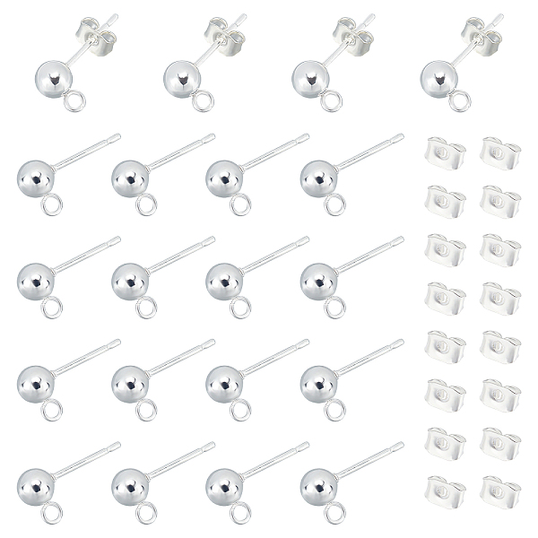 PandaHall 201 Stainless Steel Ball Stud Earring Post, Earring Findings, with Loop and 304 Stainless Steel Pins, Round, Stainless Steel Color... Price: $21.62 | PandaHall
