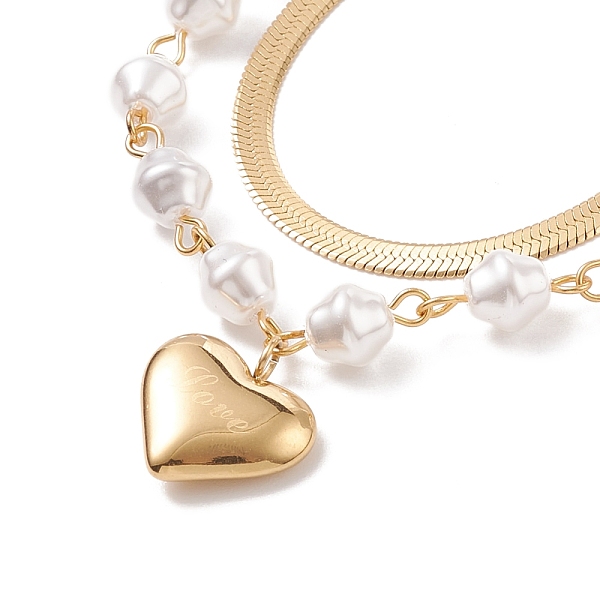PandaHall Double Chains Multi Layered Necklaces with Acrylic Pearl Beaded and Heart Charms, Ion Plating(IP) 304 Stainless Steel Jewelry for... Price: $20.56 | PandaHall