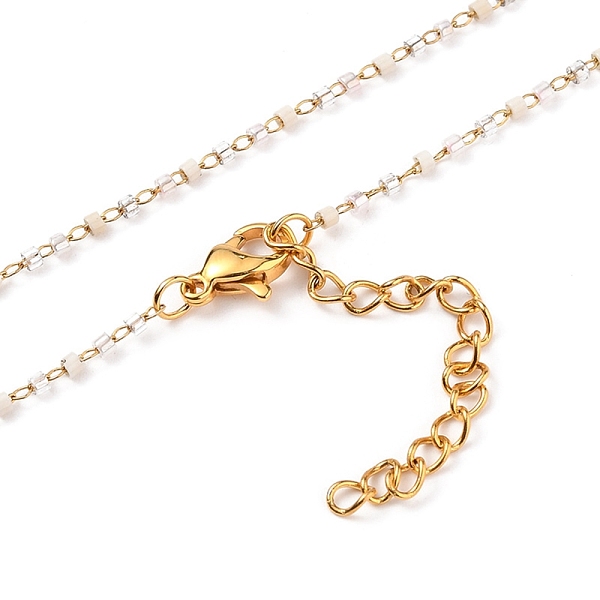 PandaHall Seed Beaded Necklaces, with Golden Plated Brass Curb Chains, Brass Round Beads and 304 Stainless Steel Lobster Claw Clasps, White... Price: $18.68 | PandaHall