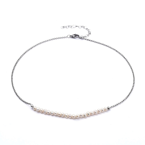 PandaHall Natural Pearl Beaded Necklaces, with 304 Stainless Steel Rolo Chains and Lobster Claw Clasps, Stainless Steel Color, 16.41 inch... Price: $92.85 | PandaHall