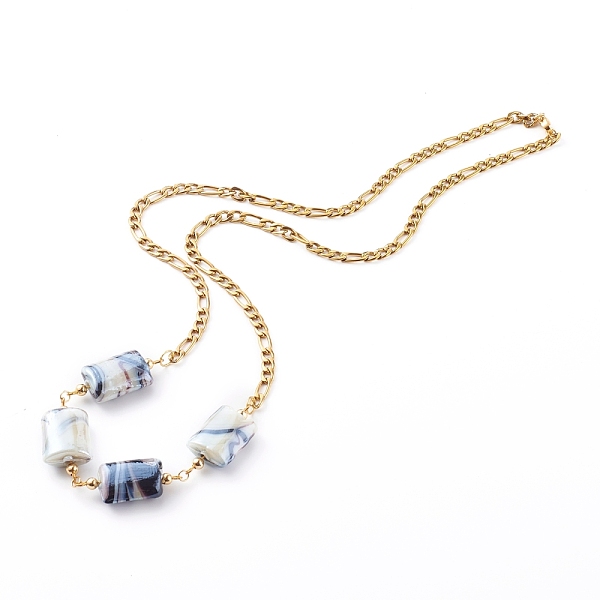 PandaHall Handmade Lampwork Beaded Necklaces, with 304 Stainless Steel Figaro Chains, Rectangle, Colorful, Golden, 25.98 inch(66cm)... Price: $14.4 | PandaHall