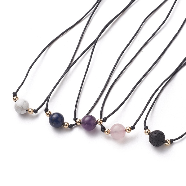 PandaHall Natural Gemstone Beaded Necklaces, with Waxed Cotton Cords, Brass Round Beads and 304 Stainless Steel Lobster Claw Clasps, Golden... Price: $17.15 | PandaHall