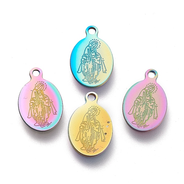 PandaHall Ion Plating(IP) 304 Stainless Steel Charms, Laser Cut, Oval with Virgin Mary, Rainbow Color, 14.5x9x0.5mm, Hole: 1.2mm 304... Price: $22.85 | PandaHall