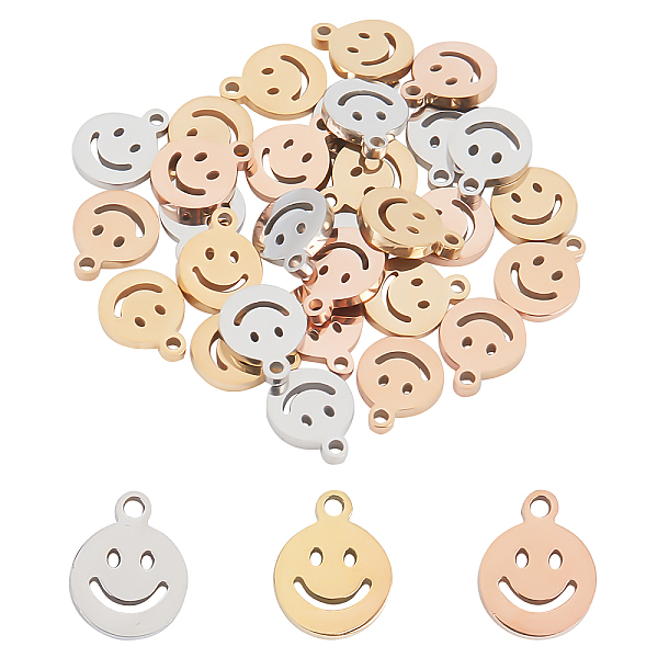 PandaHall Unicraftale 30Pcs 3 Colors 304 Stainless Steel Charms, Manual Polishing, Hollow, Flat Round with Smile, Mixed Color, 8x6x1mm, Hole... Price: $10.94 | PandaHall