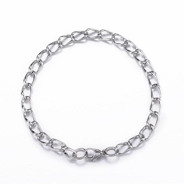 PandaHall 304 Stainless Steel Curb Chain/Twisted Chain Bracelets, with Lobster Claw Clasps, Stainless Steel Color, 8-5/8 inch(220mm), 13mm... Price: $17.95 | PandaHall