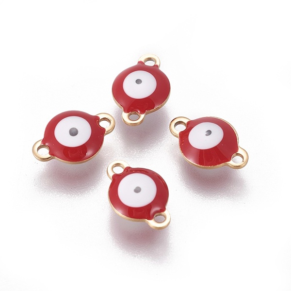 PandaHall Ion Plating(IP) 304 Stainless Steel Enamel Links connectors, Flat Round with Evil Eye, Golden, FireBrick, 12x8x4mm, Hole: 1.4mm... Price: $18.02 | PandaHall