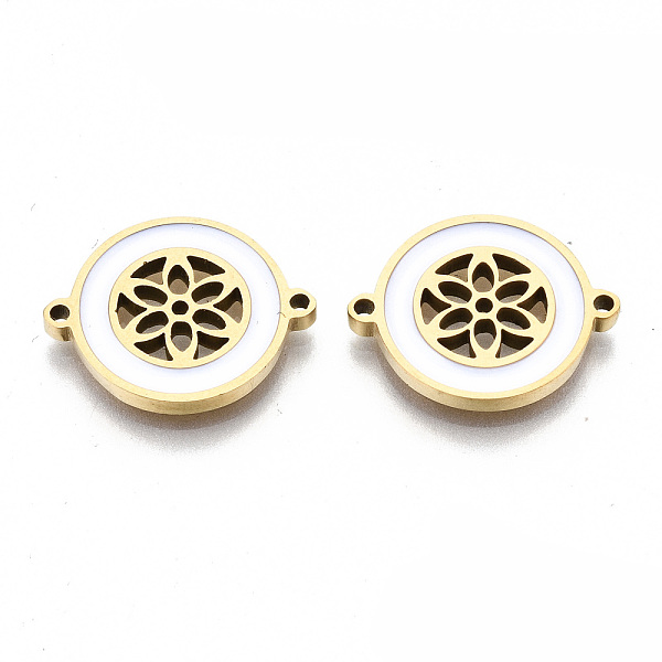 PandaHall 304 Stainless Steel Enamel Links Connectors, Laser Cut, Flat Round with Flower, White, Golden, 14.5x18.5x2mm, Hole: 1.2mm 304... Price: $15.86 | PandaHall