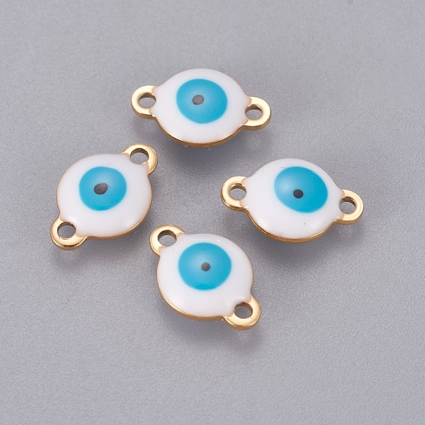 PandaHall Ion Plating(IP) 304 Stainless Steel Enamel Links connectors, Flat Round with Evil Eye, Golden, White, 12x8x4mm, Hole: 1.4mm 304... Price: $18.02 | PandaHall