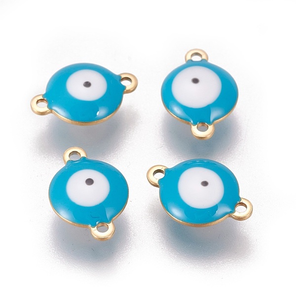 PandaHall Ion Plating(IP) 304 Stainless Steel Enamel Links connectors, Flat Round with Evil Eye, Golden, Deep Sky Blue, 14.5x10x4.5mm, Hole... Price: $18.02 | PandaHall