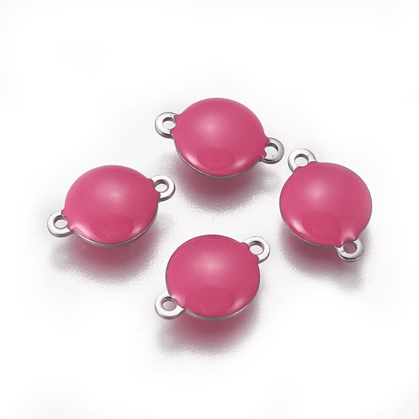 PandaHall 304 Stainless Steel Enamel Links connectors, Enamelled Sequins, Flat Round, Stainless Steel Color, Hot Pink, 14.5x10x4.5mm, Hole... Price: $9.01 | PandaHall