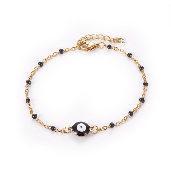PandaHall 304 Stainless Steel Enamel Cable Link Chain Bracelets, with Lobster Claw Clasps, Evil Eye, Golden, Black, 6-3/4 inch~6-7/8 inch... Price: $11.42 | PandaHall
