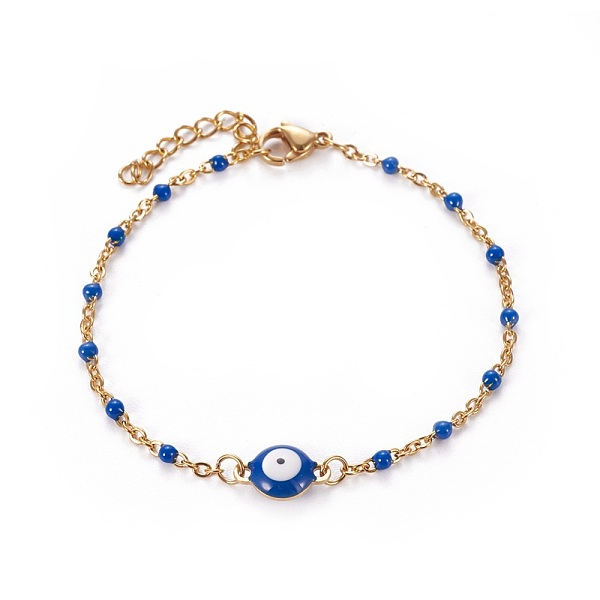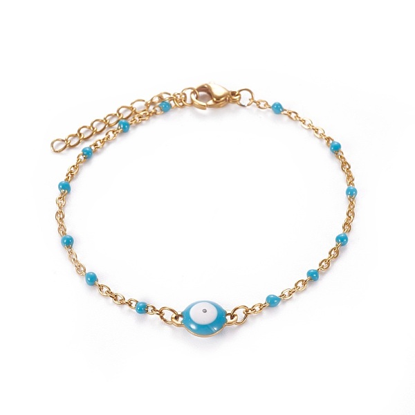 PandaHall 304 Stainless Steel Enamel Cable Link Chain Bracelets, with Lobster Claw Clasps, Evil Eye, Golden, Deep Sky Blue, 6-3/4 inch~6-7/8... Price: $11.42 | PandaHall