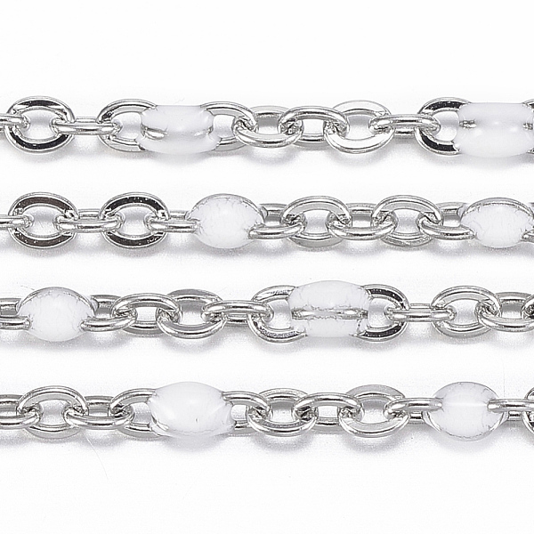 PandaHall 304 Stainless Steel Cable Chains, Soldered, with Spool, with Enamel, Oval, Stainless Steel Color, White, Links: 2x1.5x0.5mm, about... Price: $9.14 | PandaHall
