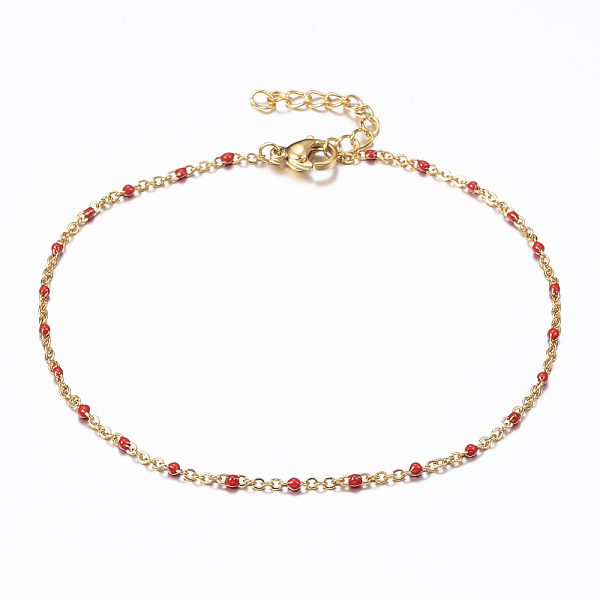 PandaHall Ion Plating(IP) 304 Stainless Steel Cable Chain Anklets, with Enamel Links, Golden, Red, 9 inch(230mm), 1.5mm Stainless Steel Red Price: $1.1 | PandaHall