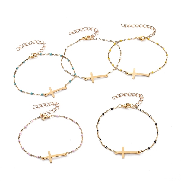 PandaHall Chain Bracelets, with Stainless Steel Enamel Link Chains & Lobster Claw Clasps & Connectors and Iron Chain Extender, Cross, Mixed... Price: $25.13 | PandaHall