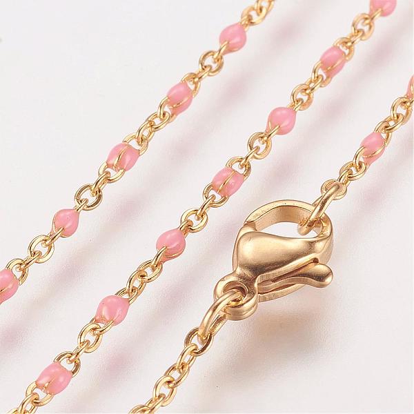 PandaHall 304 Stainless Steel Chain Necklaces, with Enamel Links, Golden, Pink, 17.91 inch(45.5cm), 1.5~2mm 304 Stainless Steel Pink Price: $13.05 | PandaHall