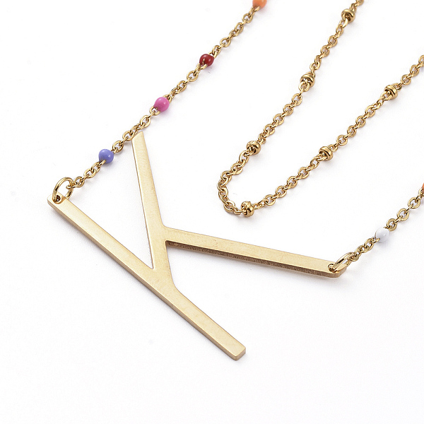PandaHall 304 Stainless Steel Double Layer Necklaces, Pendant Necklaces, with Enamel, Cable Chains and Lobster Claw Clasps, Golden, Letter. K... Price: $16.58 | PandaHall