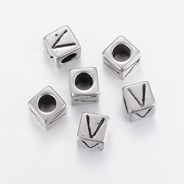 PandaHall 304 Stainless Steel Large Hole Letter European Beads, Cube with Letter. V, Antique Silver, 8x8x8mm, Hole: 5mm 304 Stainless Steel... Price: $9.79 | PandaHall