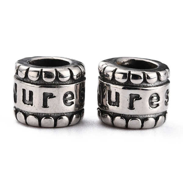 PandaHall 304 Stainless Steel Beads, European Style Beads, Large Hole Beads, Column with Word, Antique Silver, 10.5x9mm, Hole: 5.6mm 304... Price: $13.05 | PandaHall