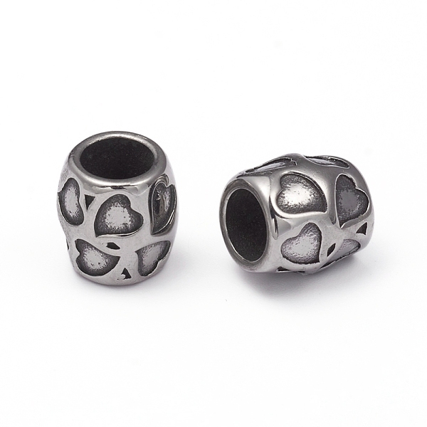 PandaHall 304 Stainless Steel European Beads, Large Hole Beads, Barrel with Heart, Antique Silver, 9.5x9.5mm, Hole: 5.5mm 304 Stainless... Price: $7.02 | PandaHall