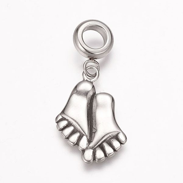 PandaHall 304 Stainless Steel European Dangle Charms, Large Hole Pendants, Foot, Antique Silver, 32mm, Hole: 5mm, Pendant: 22x15x2mm 304... Price: $12.4 | PandaHall