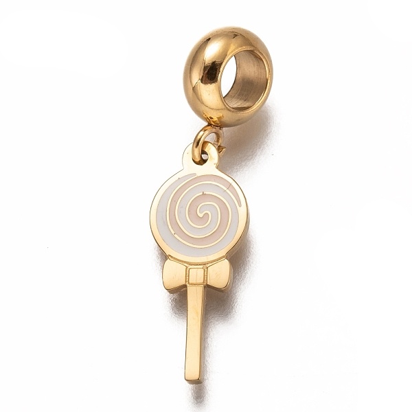 PandaHall 304 Stainless Steel Enamel European Dangle Charms, Large Hole Pendants, Lollipop Shape, Golden, Pink, 28mm, Hole: 4.5mm, pendants... Price: $11.42 | PandaHall