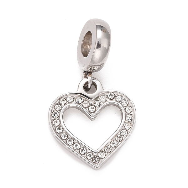 PandaHall 304 Stainless Steel European Dangle Charms, Large Hole Pendants, with Crystal Rhinestone, Heart, Stainless Steel Color, 25.5mm... Price: $12.4 | PandaHall