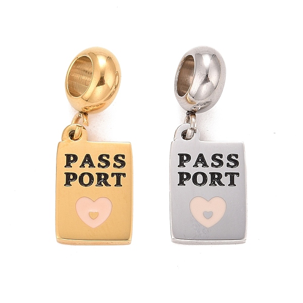 PandaHall 304 Stainless Steel European Dangle Charms, Large Hole Pendants with Enamel, Rectangle with Heart and Word Pass Port, Mixed Color... Price: $25.13 | PandaHall