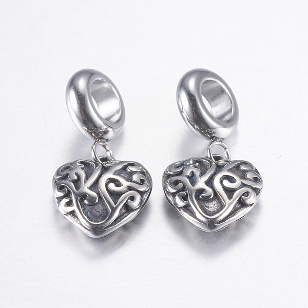 PandaHall 304 Stainless Steel European Dangle Charms, Large Hole Pendants, Manual Polishing, Heart, Antique Silver, 23.5mm, Hole: 4.8mm... Price: $14.69 | PandaHall