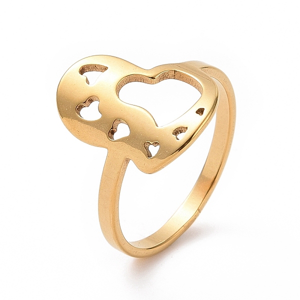 PandaHall Ion Plating(IP) 201 Stainless Steel Heart Finger Ring, Hollow Wide Ring for Valentine's Day, Golden, US Size 6 1/2(16.9mm) 201... Price: $5.22 | PandaHall