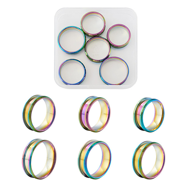 PandaHall Yilisi 6Pcs 6 Style 201 Stainless Steel Engravable Grooved Finger Rings Set for Women, Rainbow Color, US Size 7~12 3/4(17.3~22mm)... Price: $3.77 | PandaHall