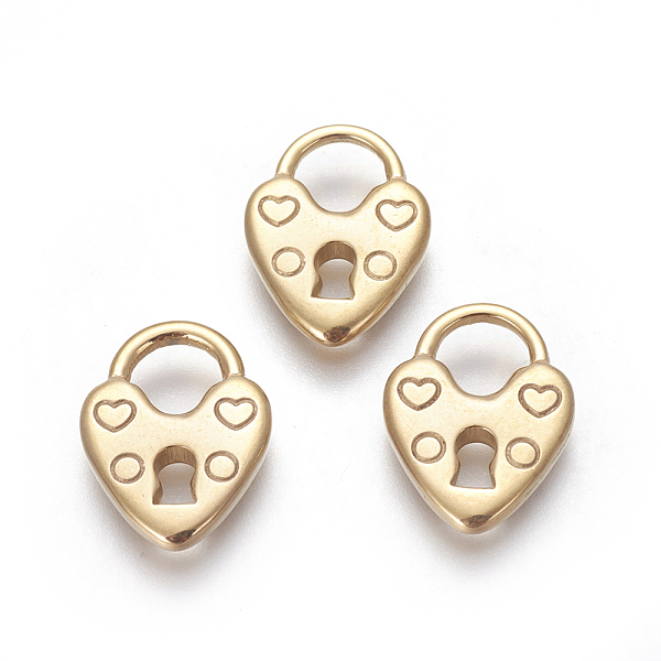 PandaHall Vacuum Plating 304 Stainless Steel Pendants, Heart Padlock, Golden, 18.5x14x2.8mm, Hole: 6.5x6.5mm 304 Stainless Steel Lock Price: $11.75 | PandaHall