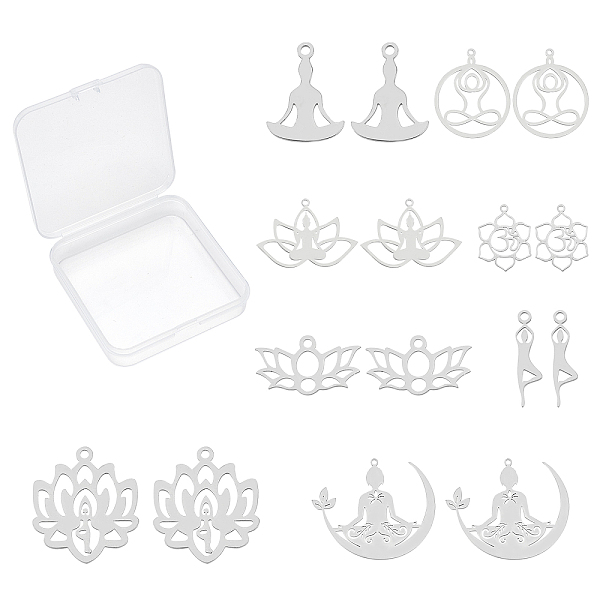 PandaHall SUNNYCLUE 1 Box 16Pcs 8 Styles Yoga Charms OM Symbol Chakra Energy Lotus Flower Floral Root Stainless Steel Hollow Pendants Bulk... Price: $9.74 | PandaHall