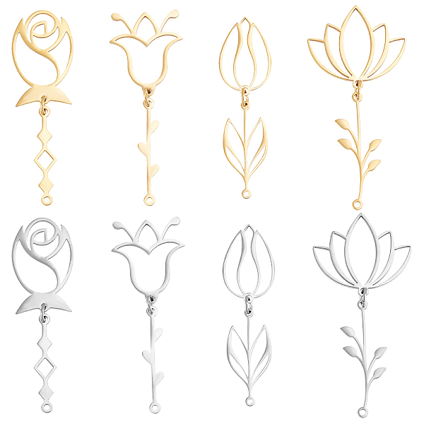 PandaHall UNICRAFTALE 8pcs 2 Colors Flower Pendants 4 Styles Stainless Steel Pendants Laser Cut Lotus Rose Charms with Jump Rings for... Price: $10.04 | PandaHall