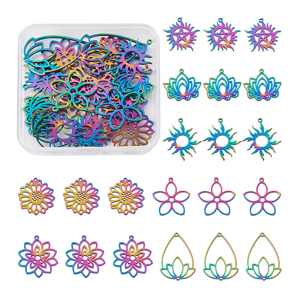 PandaHall Biyun 28Pcs 7 Style 304 Stainless Steel Connector Charms & Pendants, Teardrop with Flower & Flower & Sun & Lotus & Sun with Star... Price: $12.82 | PandaHall