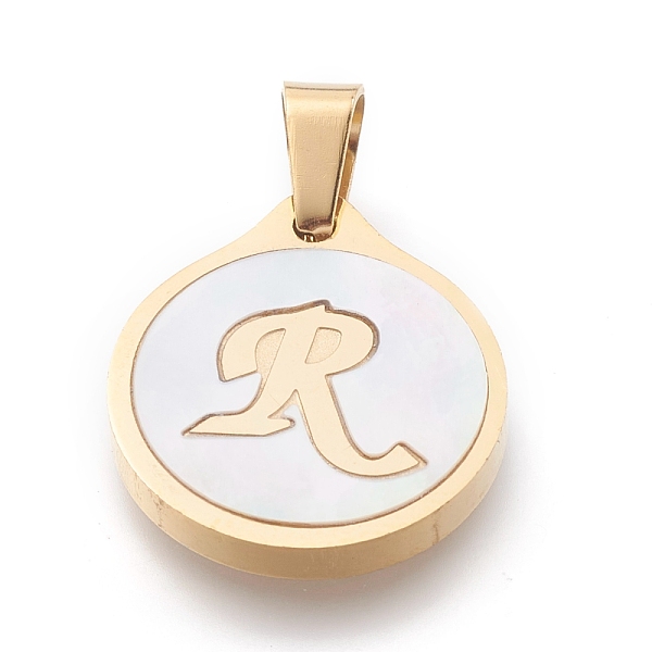PandaHall 304 Stainless Steel Pendants, with Shell, Flat Round with Alphabet, Golden, Letter. R, 20.5x18x2.5mm, Hole: 7x4mm Stainless... Price: $11.42 | PandaHall