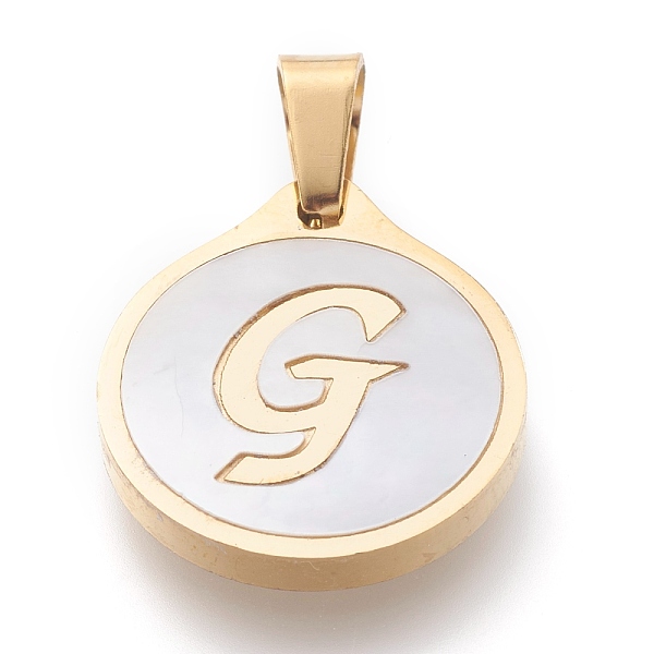 PandaHall 304 Stainless Steel Pendants, with Shell, Flat Round with Alphabet, Golden, Letter. G, 20.5x18x2.5mm, Hole: 7x4mm Stainless... Price: $11.42 | PandaHall