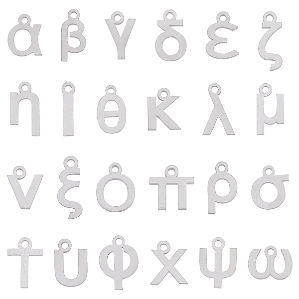 PandaHall SUNNYCLUE 48Pcs 24 Styles 304 Stainless Steel Pendants, Matte Style, Greek Alphabet, Stainless Steel Color, 2pcs/letter 304... Price: $7.47 | PandaHall