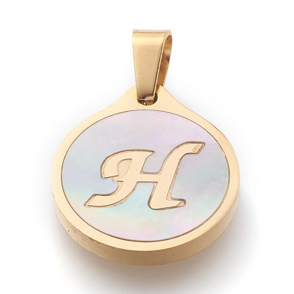 PandaHall 304 Stainless Steel Pendants, with Shell, Flat Round with Alphabet, Golden, Letter. H, 20.5x18x2.5mm, Hole: 7x4mm Stainless... Price: $11.42 | PandaHall