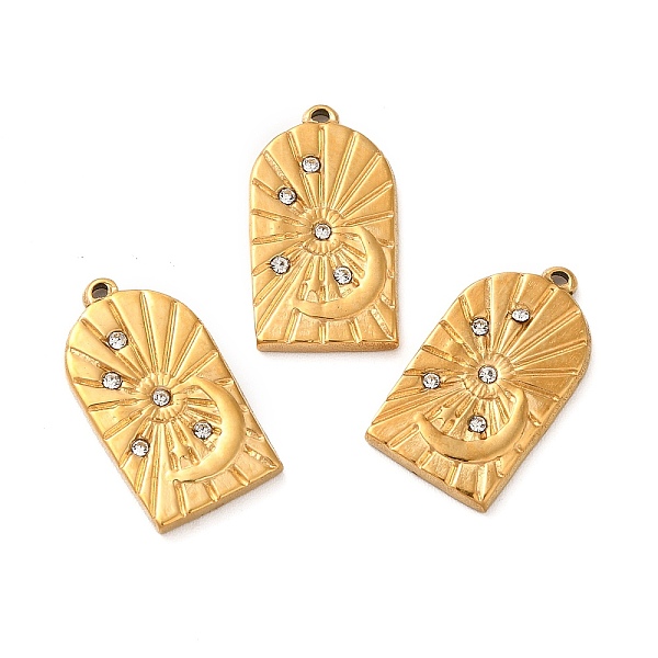 PandaHall Vacuum Plating 304 Stainless Steel Pendants, with Rhinestone, Arch with Sun & Moon, Golden, 19x11x2mm, Hole: 5.5x2.5mm Stainless... Price: $11.42 | PandaHall