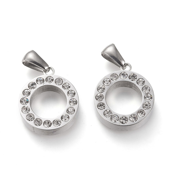 PandaHall 304 Stainless Steel Rhinestone Pendants, Manual Polishing, Ring, Stainless Steel Color, 18x15x4mm, Hole: 3x6mm Stainless... Price: $13.05 | PandaHall