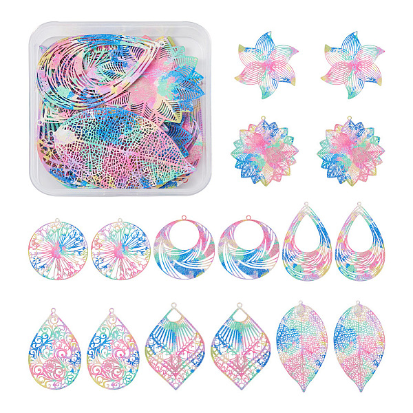 PandaHall 36Pcs 6 Style 430 Stainless Steel Filigree Pendants, Spray Painted, Etched Metal Embellishments, Teardrop & Teardrop & Flat Round... Price: $6.82 | PandaHall