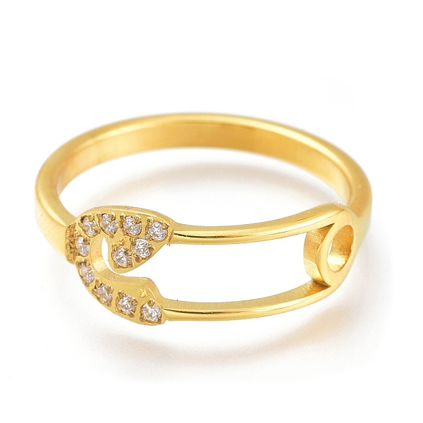 PandaHall 304 Stainless Steel Finger Rings, with Clear Cubic Zirconia, Wide Band Rings, Safety Pin Shape, Golden, US Size 7, Inner Diameter... Price: $19.58 | PandaHall