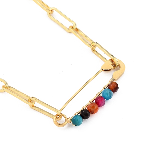 PandaHall 201 Stainless Steel Safety Pins Pendant Necklaces, with Natural Agate Beads, 304 Stainless Steel Figaro Chains and Plastic Ear... Price: $20.4 | PandaHall