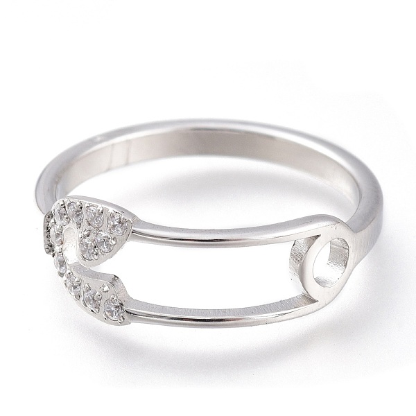 PandaHall 304 Stainless Steel Finger Rings, with Clear Cubic Zirconia, Wide Band Rings, Safety Pin Shape, Stainless Steel Color, US Size 7... Price: $17.62 | PandaHall
