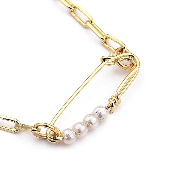 PandaHall Brass Safety Pin Pendant Necklaces, with Natural Rose Quartz Beads, Shell Pearl Beads, 304 Stainless Steel Toggle Clasps and... Price: $14.86 | PandaHall